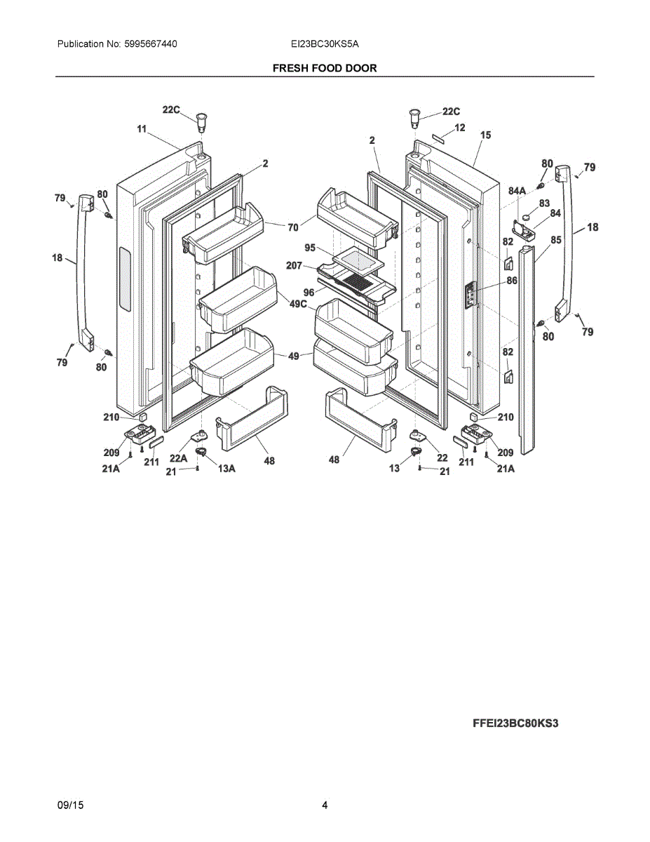 Parts for Electrolux EI23BC30KS5A: 03 - Fresh Food Door Parts