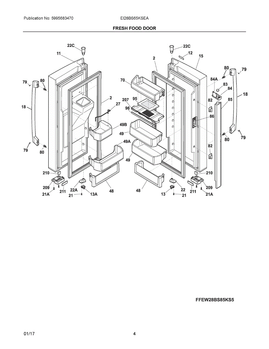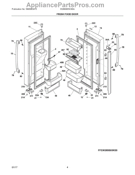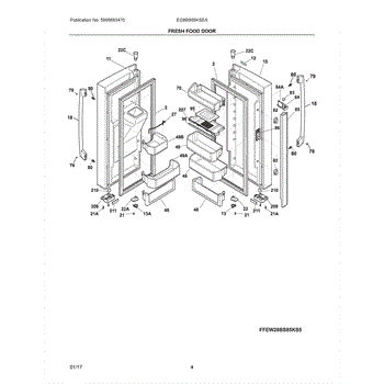 Refrigerator door assembly for the fresh food compartment. Replaces damaged, dented, cracked, or broken doors to restore your refrigerator's appearance.
