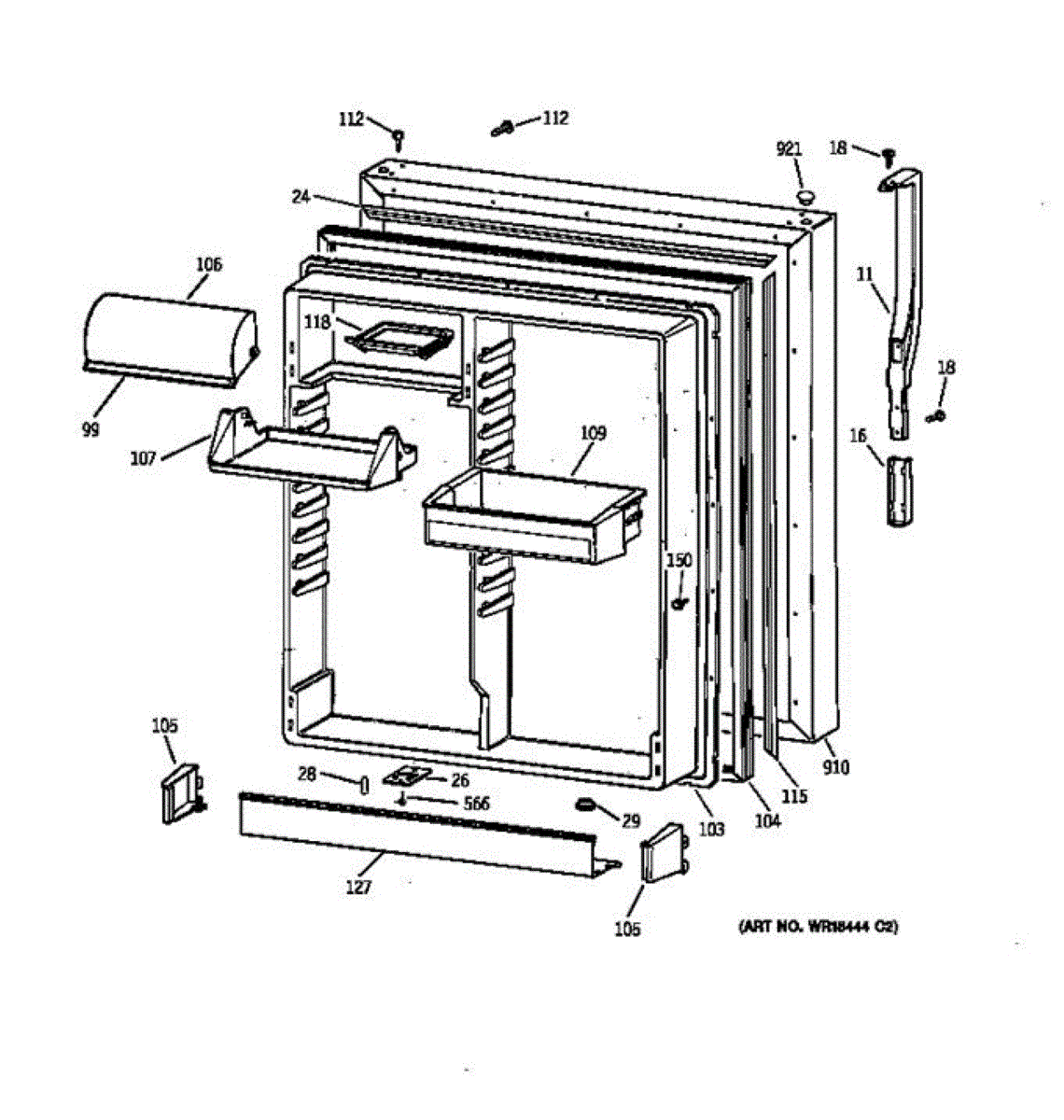 Parts for Ge 36369962991: Fresh Food Door Parts