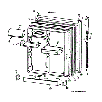 Parts for Ge 36379285991: Fresh Food Door Parts