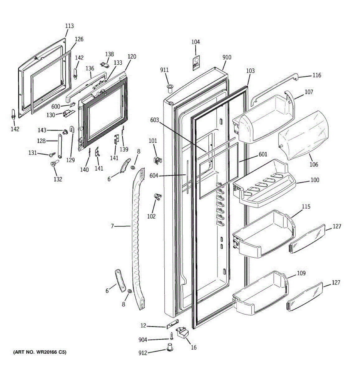 The Door Bin is an OEM part for GE refrigerators. It is a convenient storage compartment located on the interior of the refrigerator door, designed to hold and organize smaller items such as condiments, jars, or beverages.