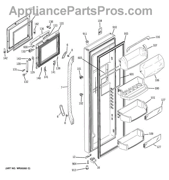 The Door Bin is an OEM part for GE refrigerators. It is a convenient storage compartment located on the interior of the refrigerator door, designed to hold and organize smaller items such as condiments, jars, or beverages.