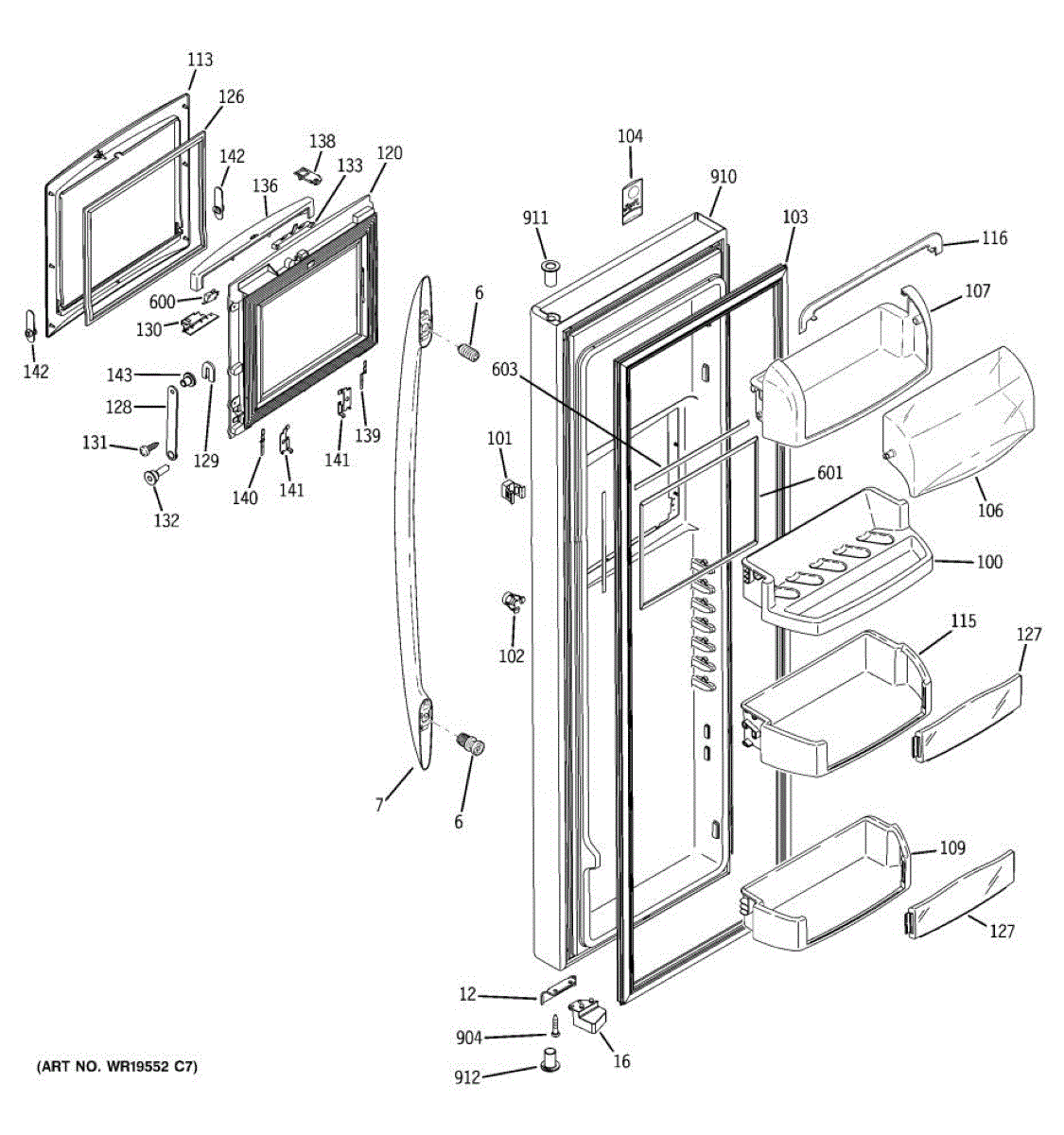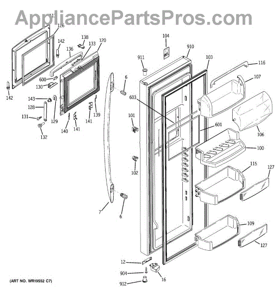 The Door Bin is an OEM part for GE refrigerators. It is a convenient storage compartment located on the interior of the refrigerator door, designed to hold and organize smaller items such as condiments, jars, or beverages.