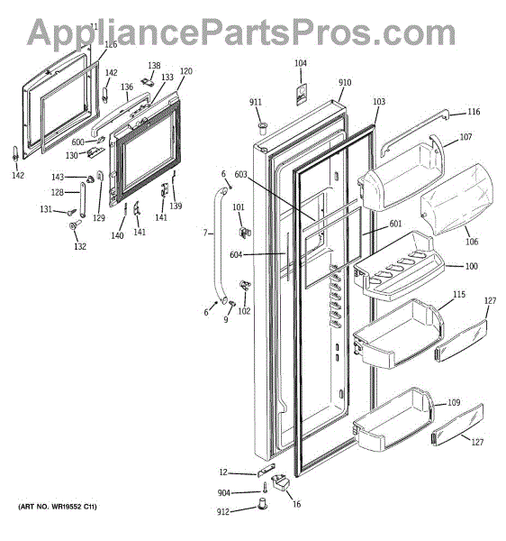 The Door Bin is an OEM part for GE refrigerators. It is a convenient storage compartment located on the interior of the refrigerator door, designed to hold and organize smaller items such as condiments, jars, or beverages.