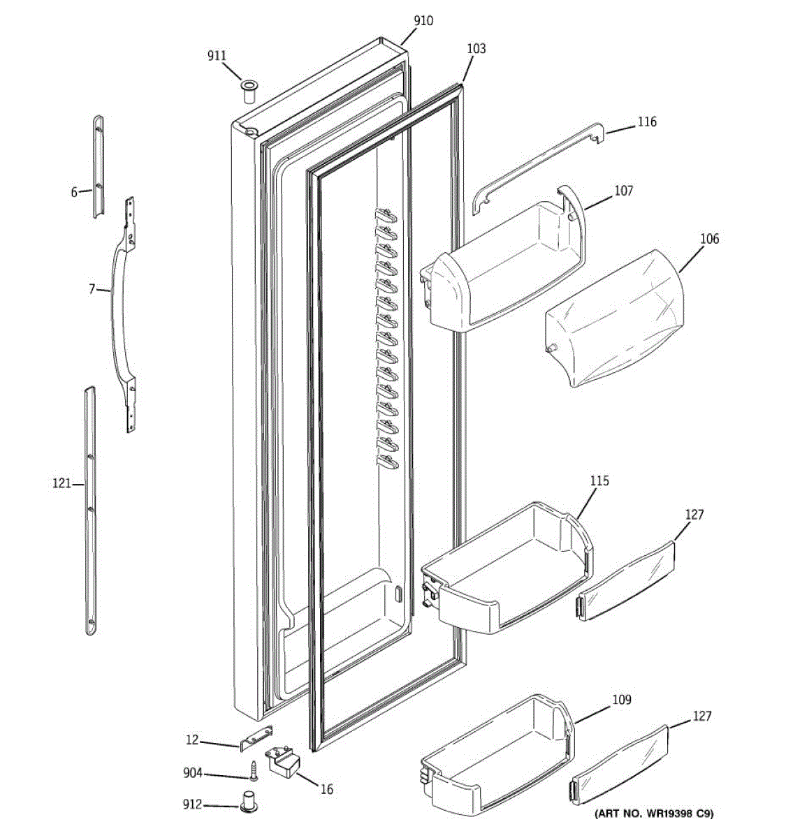 Parts for Ge DSS25KGRCWW: 02 - Fresh Food Door Parts