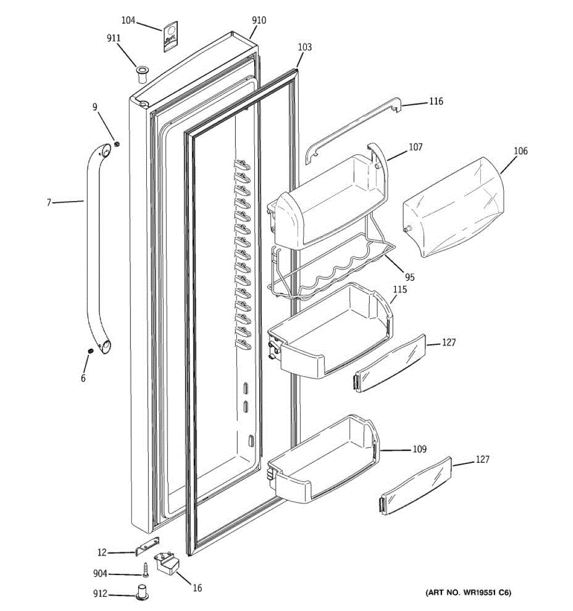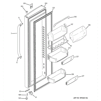 The Door Bin is an OEM part for GE refrigerators. It is a convenient storage compartment located on the interior of the refrigerator door, designed to hold and organize smaller items such as condiments, jars, or beverages.