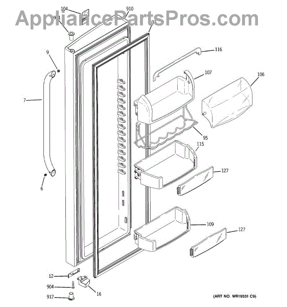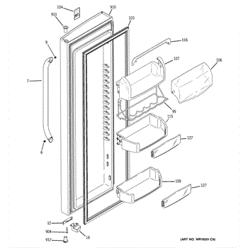 The Door Bin is an OEM part for GE refrigerators. It is a convenient storage compartment located on the interior of the refrigerator door, designed to hold and organize smaller items such as condiments, jars, or beverages.