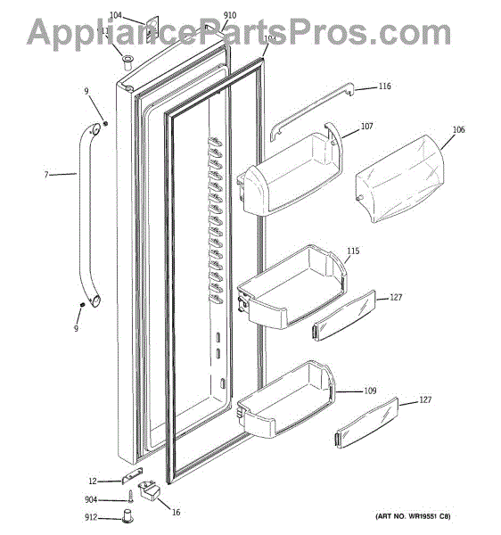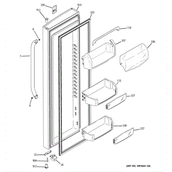 The Door Bin is an OEM part for GE refrigerators. It is a convenient storage compartment located on the interior of the refrigerator door, designed to hold and organize smaller items such as condiments, jars, or beverages.
