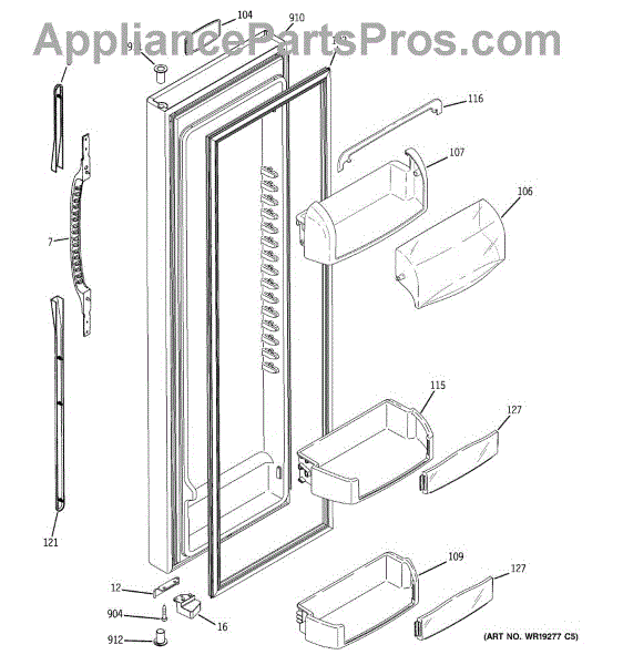 The Door Bin is an OEM part for GE refrigerators. It is a convenient storage compartment located on the interior of the refrigerator door, designed to hold and organize smaller items such as condiments, jars, or beverages.