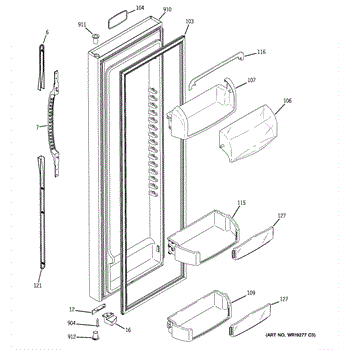 The Door Bin is an OEM part for GE refrigerators. It is a convenient storage compartment located on the interior of the refrigerator door, designed to hold and organize smaller items such as condiments, jars, or beverages.