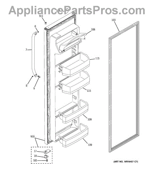 Parts for Ge ESH25JSXBSS: 02 - Fresh Food Door Parts