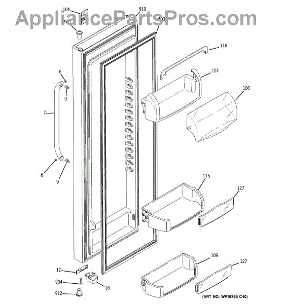 The Door Bin is an OEM part for GE refrigerators. It is a convenient storage compartment located on the interior of the refrigerator door, designed to hold and organize smaller items such as condiments, jars, or beverages.