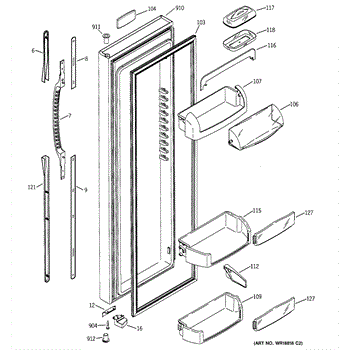 The Door Bin is an OEM part for GE refrigerators. It is a convenient storage compartment located on the interior of the refrigerator door, designed to hold and organize smaller items such as condiments, jars, or beverages.