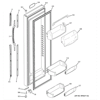 The Door Bin is an OEM part for GE refrigerators. It is a convenient storage compartment located on the interior of the refrigerator door, designed to hold and organize smaller items such as condiments, jars, or beverages.