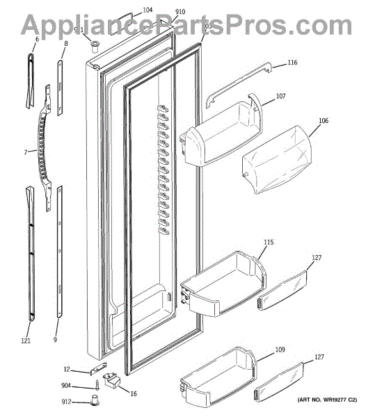The Door Bin is an OEM part for GE refrigerators. It is a convenient storage compartment located on the interior of the refrigerator door, designed to hold and organize smaller items such as condiments, jars, or beverages.