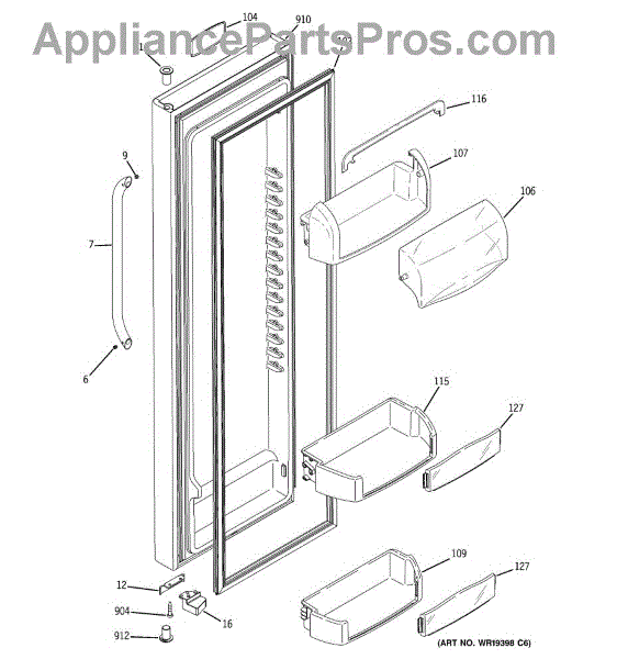The Door Bin is an OEM part for GE refrigerators. It is a convenient storage compartment located on the interior of the refrigerator door, designed to hold and organize smaller items such as condiments, jars, or beverages.