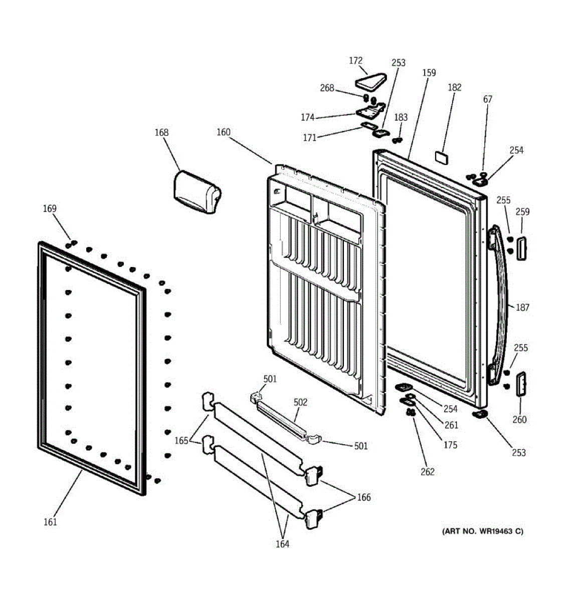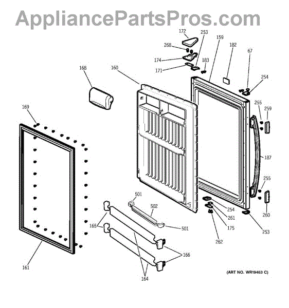 Refrigerator door handle assembly in bisque finish. Mounts to the front of the freezer door. Replace if your handle is cracked, broken, or discolored.