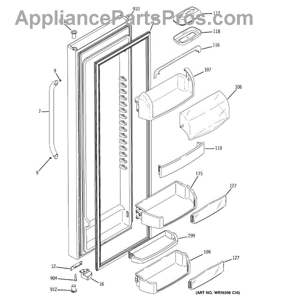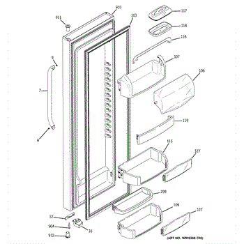 The Door Bin is an OEM part for GE refrigerators. It is a convenient storage compartment located on the interior of the refrigerator door, designed to hold and organize smaller items such as condiments, jars, or beverages.