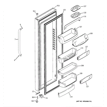 Replacement door bin for side-by-side refrigerators. Mounts inside the door to organize condiments, jars, and beverages. Replace if cracked or broken.