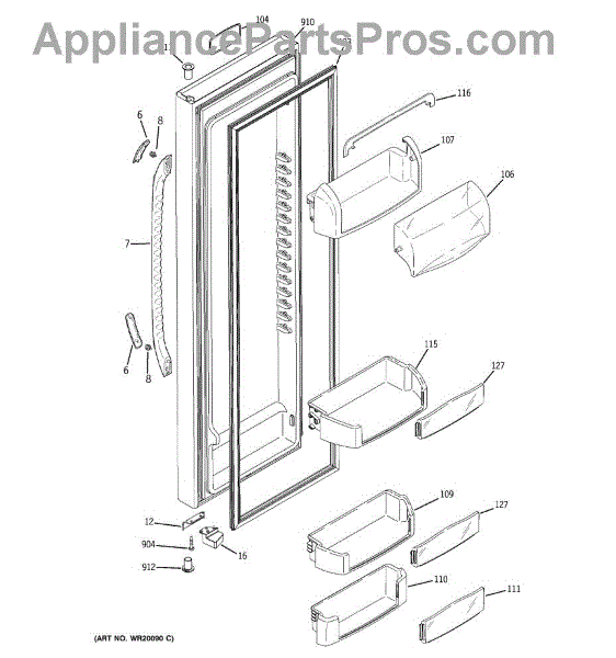 The Door Bin is an OEM part for GE refrigerators. It is a convenient storage compartment located on the interior of the refrigerator door, designed to hold and organize smaller items such as condiments, jars, or beverages.