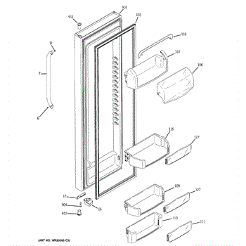 The Door Bin is an OEM part for GE refrigerators. It is a convenient storage compartment located on the interior of the refrigerator door, designed to hold and organize smaller items such as condiments, jars, or beverages.