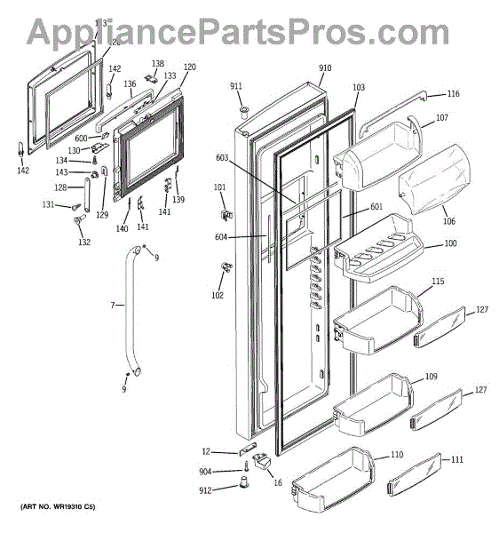 The Door Bin is an OEM part for GE refrigerators. It is a convenient storage compartment located on the interior of the refrigerator door, designed to hold and organize smaller items such as condiments, jars, or beverages.