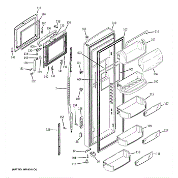 The Door Bin is an OEM part for GE refrigerators. It is a convenient storage compartment located on the interior of the refrigerator door, designed to hold and organize smaller items such as condiments, jars, or beverages.