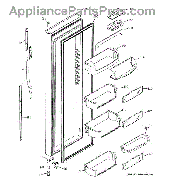 The Door Bin is an OEM part for GE refrigerators. It is a convenient storage compartment located on the interior of the refrigerator door, designed to hold and organize smaller items such as condiments, jars, or beverages.