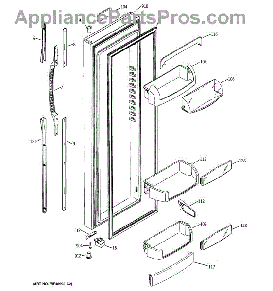 The Door Bin is an OEM part for GE refrigerators. It is a convenient storage compartment located on the interior of the refrigerator door, designed to hold and organize smaller items such as condiments, jars, or beverages.