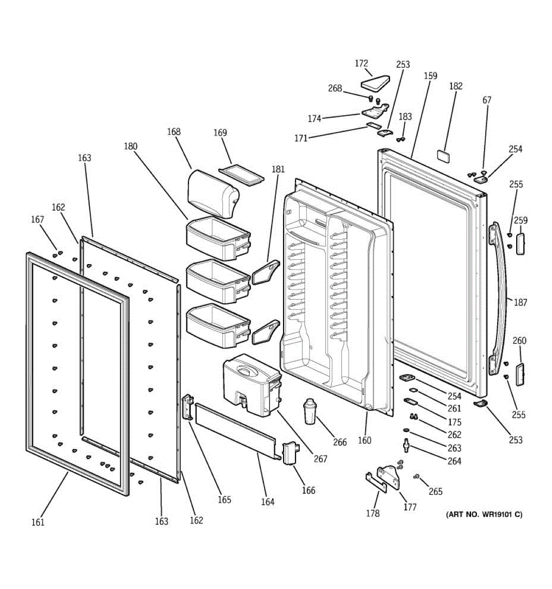 Refrigerator door handle assembly in bisque finish. Mounts to the front of the freezer door. Replace if your handle is cracked, broken, or discolored.