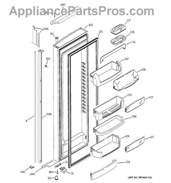 The Door Bin is an OEM part for GE refrigerators. It is a convenient storage compartment located on the interior of the refrigerator door, designed to hold and organize smaller items such as condiments, jars, or beverages.