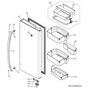 Hinge-mounted stop that limits how far your refrigerator door can swing open. Replace if cracked, broken, or missing to prevent door overextension.