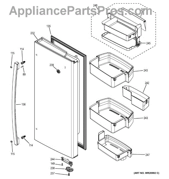 This replacement part is a door and is intended for use in refrigerators. This door is able to seal the appliance shut while not in use, allowing the food to stay cold.A new door might be needed if the current one is no longer able to seal properly. This can be due to normal wear and tear in the door sealant or the door itself. If the temperature inside the appliance is higher than normal, the door may not be working as needed and should be replaced if this is the case. This should be a fairly simple repair.This is a genuine OEM replacement part made by GE. This part is sold individually and is sourced directly from the manufacturer for long-lasting use.