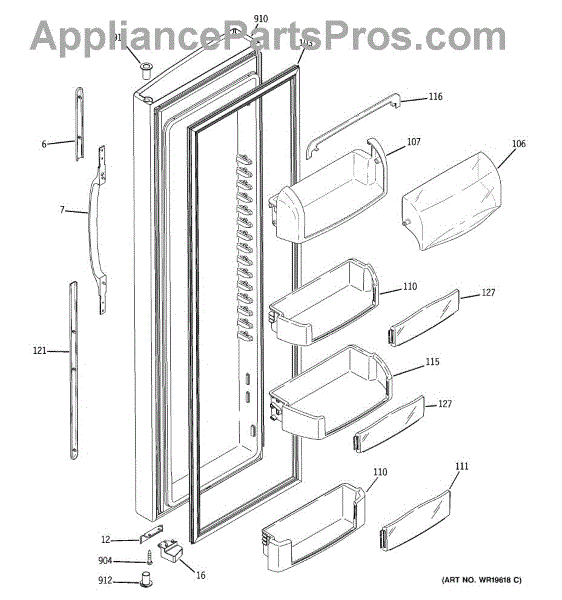Parts for Ge GSC22KGRABB: 02 - Fresh Food Door Parts