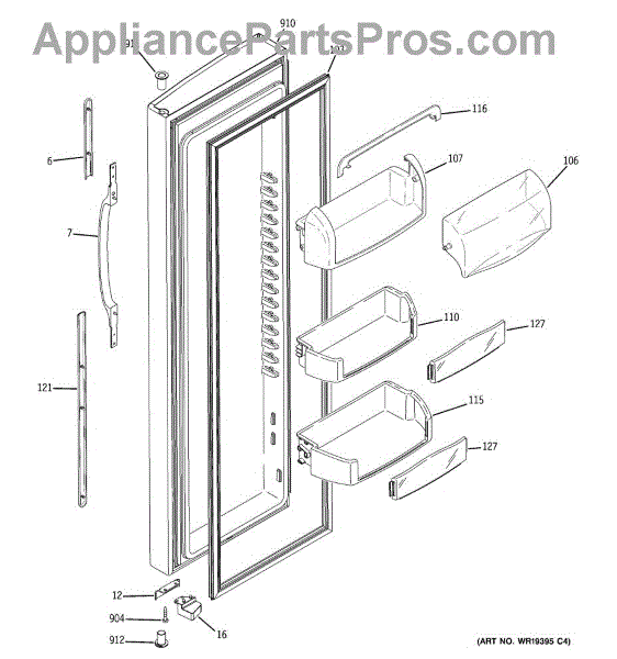The Door Bin is an OEM part for GE refrigerators. It is a convenient storage compartment located on the interior of the refrigerator door, designed to hold and organize smaller items such as condiments, jars, or beverages.