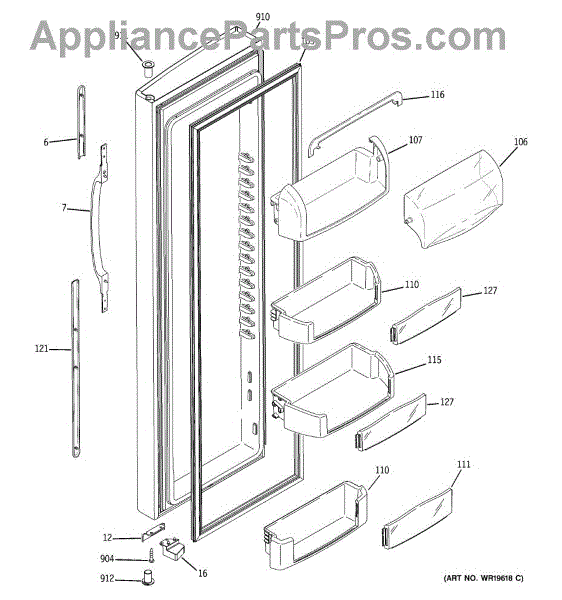 The Door Handle is an OEM part for GE refrigerators. This part provides a secure and comfortable grip for opening and closing the refrigerator door.