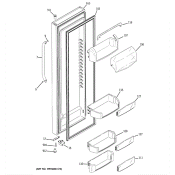 Replacement door bin for side-by-side refrigerators. Mounts inside the door to organize condiments, jars, and beverages. Replace if cracked or broken.