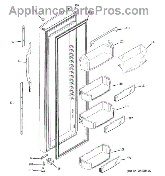 The Door Bin is an OEM part for GE refrigerators. It is a convenient storage compartment located on the interior of the refrigerator door, designed to hold and organize smaller items such as condiments, jars, or beverages.