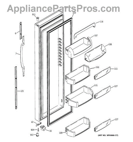 The Door Bin is an OEM part for GE refrigerators. It is a convenient storage compartment located on the interior of the refrigerator door, designed to hold and organize smaller items such as condiments, jars, or beverages.