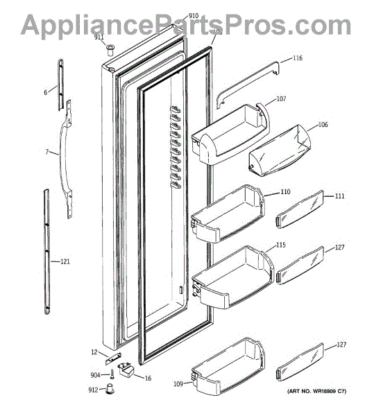 The Door Bin is an OEM part for GE refrigerators. It is a convenient storage compartment located on the interior of the refrigerator door, designed to hold and organize smaller items such as condiments, jars, or beverages.
