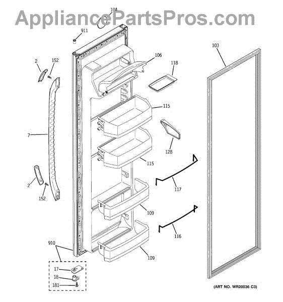 Parts for Ge GSE22KETGFWW: 02 - Fresh Food Door Parts
