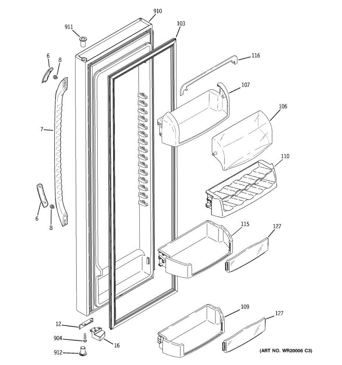 Parts for Ge GSF25TGTEBB: 02 - Fresh Food Door Parts