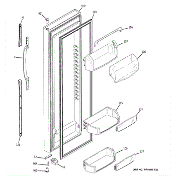 The Door Bin is an OEM part for GE refrigerators. It is a convenient storage compartment located on the interior of the refrigerator door, designed to hold and organize smaller items such as condiments, jars, or beverages.