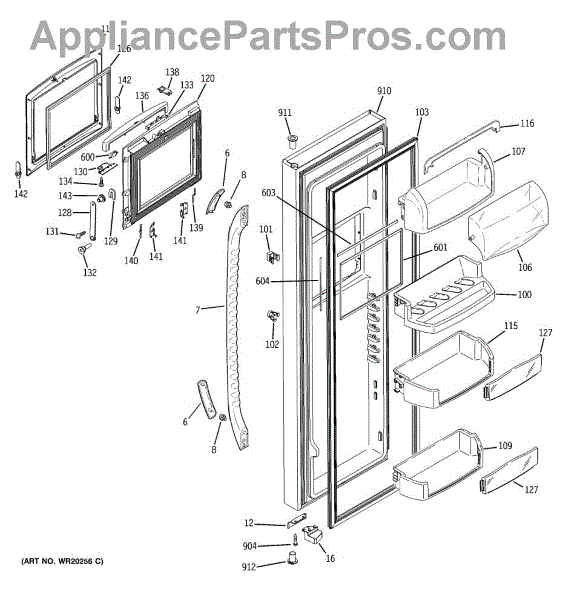 The Door Bin is an OEM part for GE refrigerators. It is a convenient storage compartment located on the interior of the refrigerator door, designed to hold and organize smaller items such as condiments, jars, or beverages.