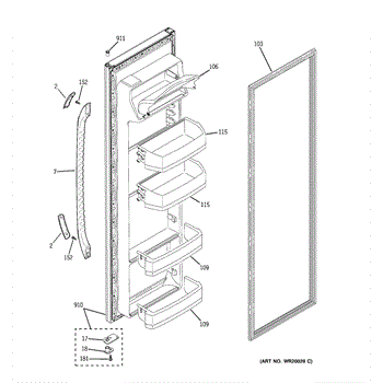 White outer door panel for side-by-side refrigerators. Replaces cracked, dented, or discolored exterior door shells. Restores appearance and structure.
