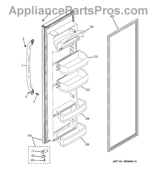 Seals your refrigerator's fresh food door to keep cool air in. Replace if door won't seal, fridge won't cool, or gasket is torn. Confirm fit by model.