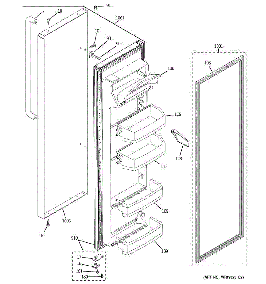 Replacement dairy door for refrigerator. Snaps into door to create covered compartment for butter and cheese. Needed when original is cracked or broken.