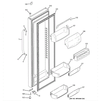 Replacement door bin for side-by-side refrigerators. Mounts inside the door to organize condiments, jars, and beverages. Replace if cracked or broken.