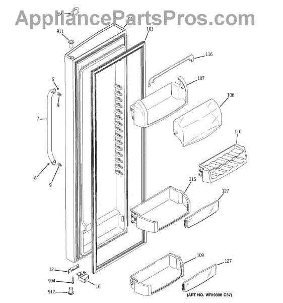 Replace cracked or missing door foam insulation on your side-by-side refrigerator. This assembly installs inside the fresh food door to restore sealing.