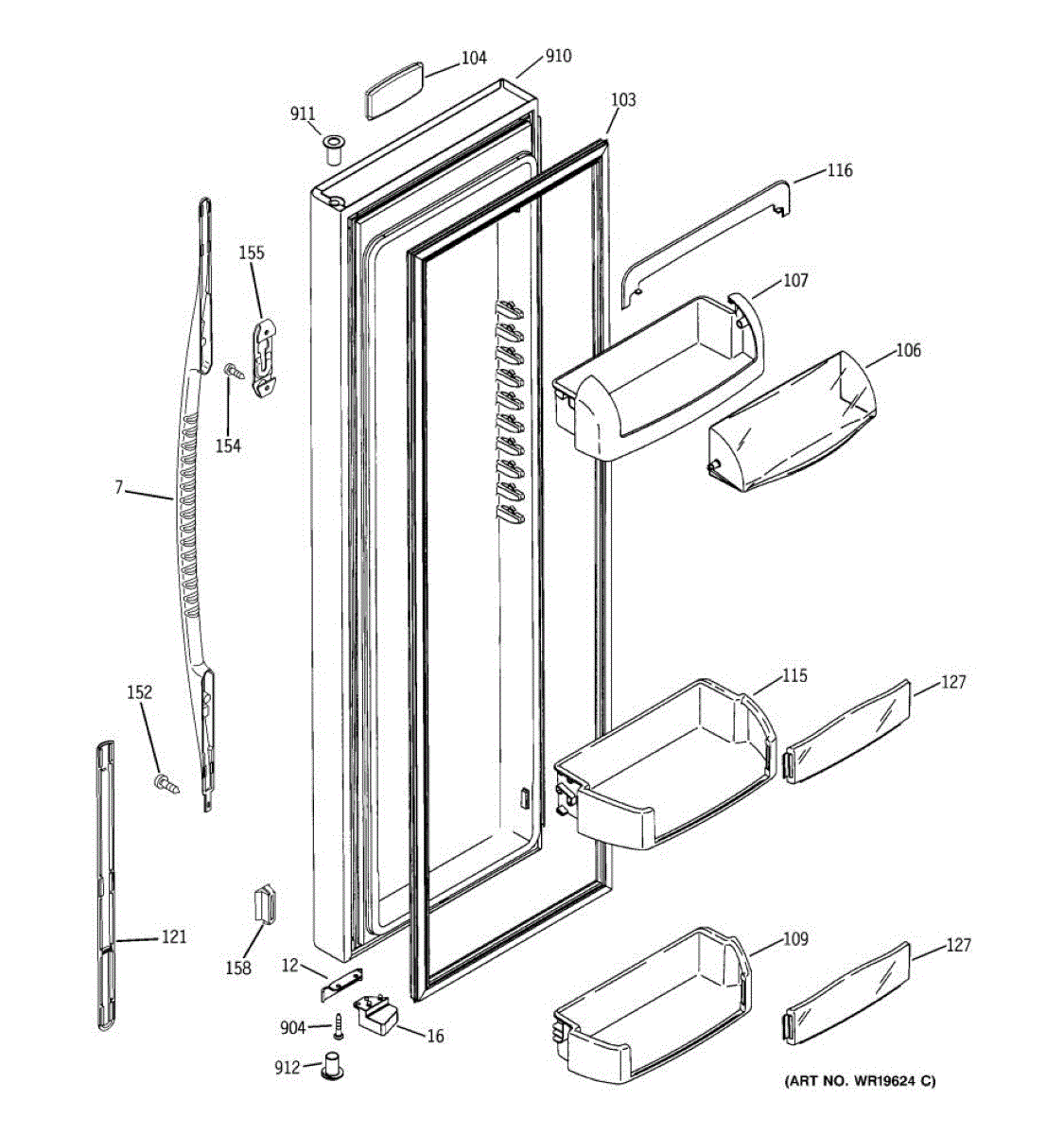 Replacement door bin for side-by-side refrigerators. Mounts inside the door to organize condiments, jars, and beverages. Replace if cracked or broken.